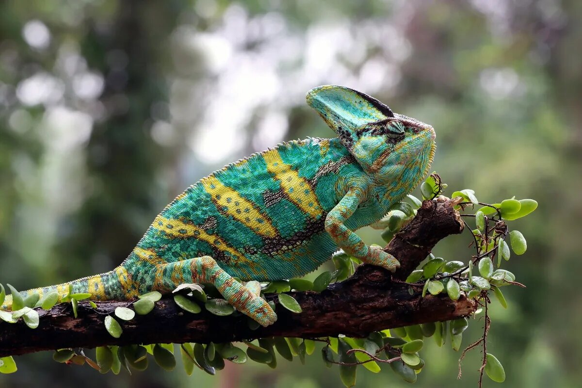 - 🐸 Не все хамелеоны одинаково цветные. Например, пальмовый хамелеон (Furcifer pardalis) — один из самых ярких, а брауншвейгский хамелеон — в основном зелёный.