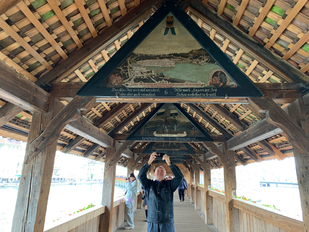 Часовенный мост - самый древний деревянный крытый мост в Европе. Построен в 1365 году. Стоит на сваях - деревянных и бетонных. У середины моста возвышается кирпичная башня. Раньше она служила в качестве темницы и сторожевой вышки, а теперь в башне размещается сувенирная лавка. Главная особенность моста - старинные треугольные картины под стропилами, изображающие различные сценки из жизни города. В ближайшие дни на канале выйдет полный фильм о мостах Люцерна. Подписывайтесь на канал, у нас интересно! И не забудьте заглянуть на сайт Мировые Мосты ⇢