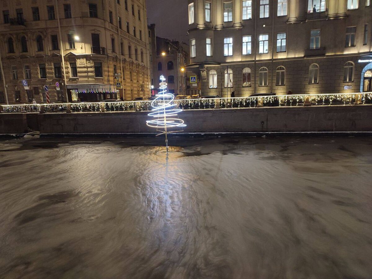 Световые инсталляции украсили реку Мойку в преддверии новогодних праздников