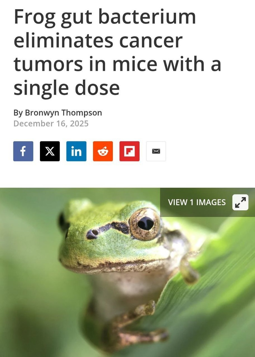 🐸 Японские учёные из института JAIST обнаружили в кишечнике древесных лягушек бактерию, способную полностью уничтожать раковые опухоли