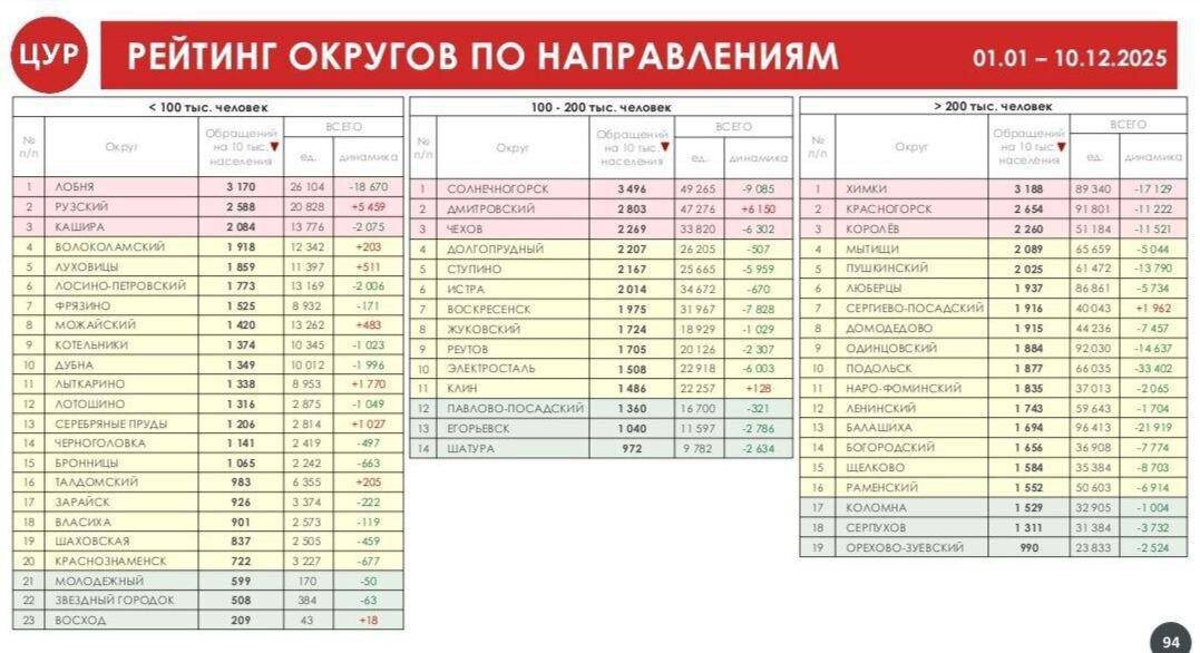 Эффективность власти в Подмосковье: рейтинг округов по обращениям граждан