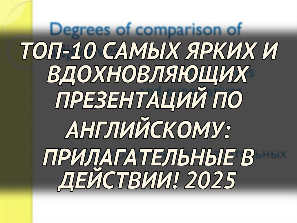 В 2025 году мы собрали ТОП-10 лучших презентаций на тему прилагательных, которые выделяются своим креативным подходом, инновационными дизайнами и эффективными методиками обучения или вдохновения. Эти работы демонстрируют, как от простых описательных слов можно перейти к полноценным storytelling-историям, пробуждая интерес к грамматике и расширяя горизонты восприятия. Ознакомьтесь с нашим подбором, чтобы найти идеи для своей следующей презентации и поднять навык общения на новый уровень.