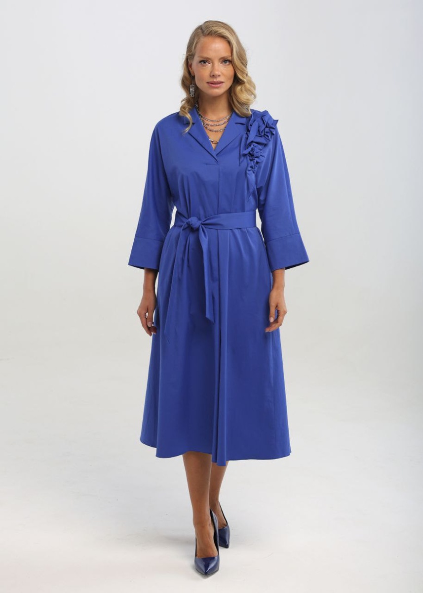 Эффектное платье насыщенного василькового цвета с дизайнерским цветком станет вашим любимым. Размеры: 42-54.