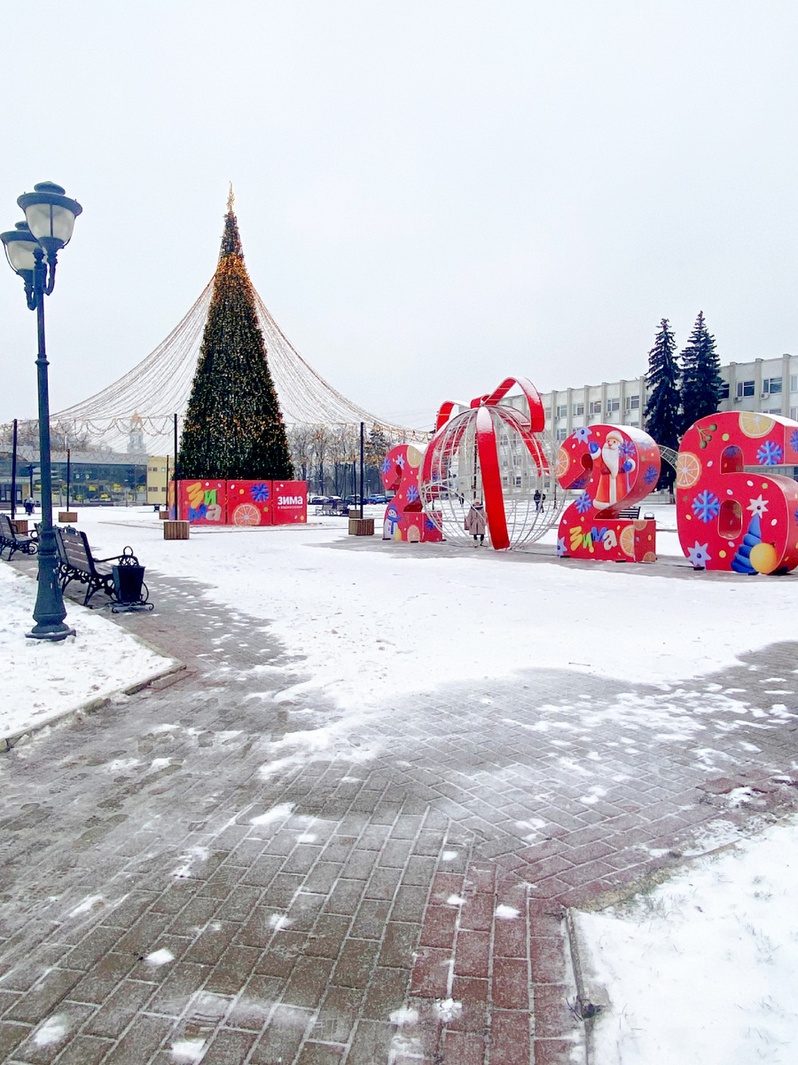 Однако мы сделали паузу в суете и дошли до городской центральной новогодней ёлки, которую уже много раз проезжали мимо на машине.