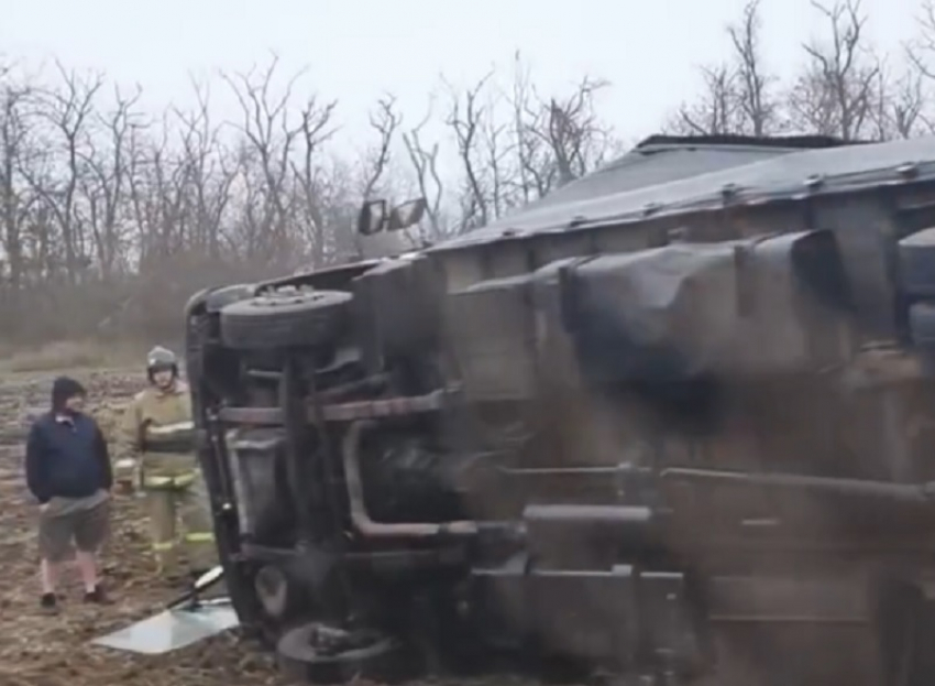На трассе Цимлянск – Суровикино в Ростовской области произошло крупное ДТП. О происшествии рассказали читатели «Блокнота». По их словам, утром 18 декабря на трассе потерял управление из-за обледенения дороги грузовой автомобиль. Машина вылетела с дороги и перевернулась. - Дорога полностью обледенела. Машины заносит на трассе, - рассказали водители. По их словам, водитель грузовика выжил. На месте работают пожарные. Они заливают вытекшее из баков грузовика горючее. К месту ДТП прибыли и сотрудники ГАИ. Региональная Госавтоинспекция напоминает: Соблюдайте правила, будьте внимательны за рулём и помните: ваша жизнь и здоровье зависят от простого действия — пристегнуться ремнем безопасности и соблюдать скоростной режим!