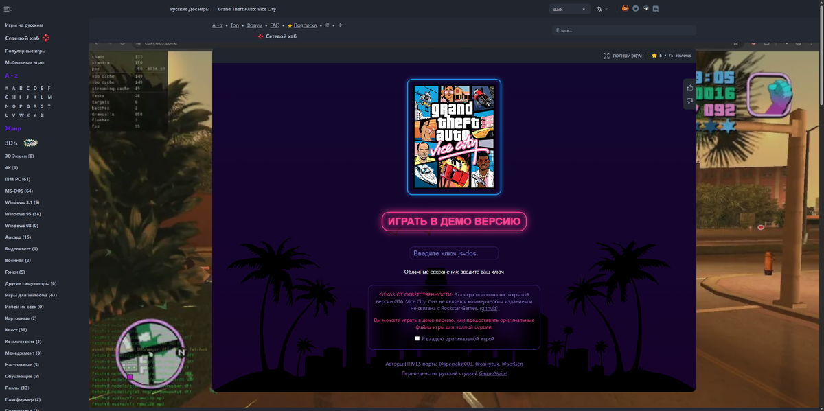 GTA: Vice City в браузере: Оригинальная игра с русской озвучкой без установки и лаунчеров