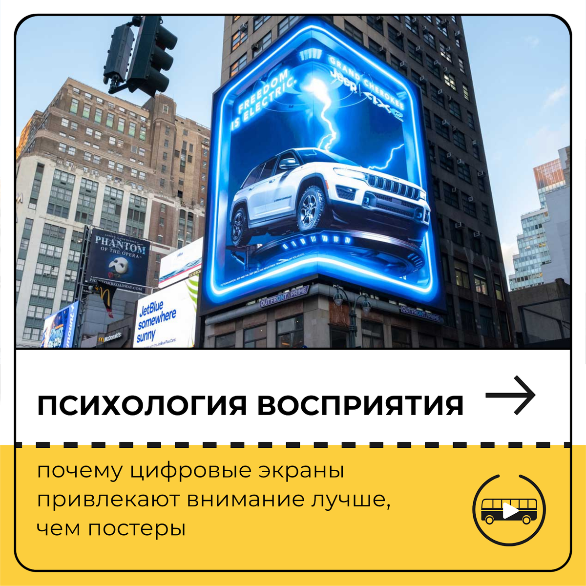 Исследования о внимании, эмоциональном отклике и эффективности DOOH В современном мегаполисе внимание – это самый ценный ресурс. Проходим мимо сотен рекламных сообщений ежедневно, но фиксируем только часть из них. Эволюция наружной рекламы: от статичного билборда к динамическому цифровому экрану — напрямую связана с тем, как мозг человека воспринимает визуальную информацию. Исследования показывают, что движение, динамичность и контекст заставляют взгляд задерживаться, а память — кодировать сообщение лучше, чем у традиционных постеров. На уровне нейробиологии визуальный стимул, который изменяется во времени, активирует больше областей мозга, чем статичное изображение. Исследования, проведенные с использованием нейроизмерительных методов, подтверждают, что полноэкранное динамическое DOOH-сообщение вызывает более сильный эмоциональный отклик и более глубокое кодирование информации в памяти, чем статичные форматы.