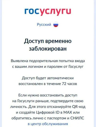 «Госуслуги» блокируют на трое суток после использования VPN, разблокировать сервис предлагают через мессенджер Max