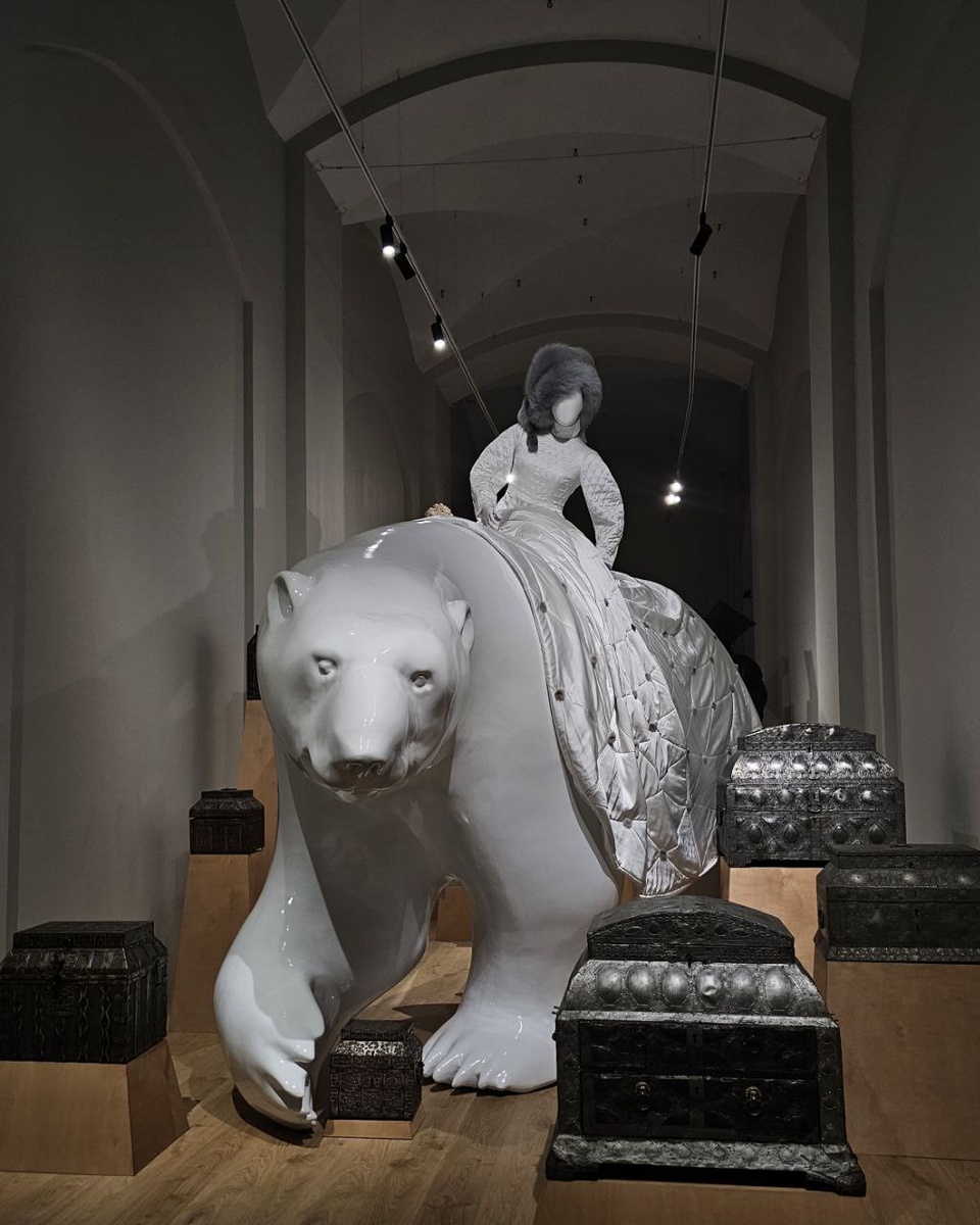 Сходила на выставку «Сны Алёны» в Историческом музее, там представлены работы кутюрье Алёны Ахмадулиной #кудаходитматрёша Я знала, что меня ждёт много кокошников. Но не знала, что познакомлюсь и с русским промыслом, и со сказочной символикой. Как будто шагнула в древний русский мир, где живут зачарованные царевны, пернатые девы, девушки-богатыри и красавицы, превращённые в морские волны Очень понравилось, как выстроены переходы между залами и музыкальное сопровождение. Оно буквально ведёт тебя сквозь экспозицию, создавая цельное ощущение сна. Единственное, чего мне немного не хватило, подробных описаний рядом с каждым образом. В начале дают брошюру, но я так привыкла читать пояснения прямо у экспонатов, что постоянно ловила себя на поиске табличек Помимо фантастических костюмов, на выставке показаны подлинные предметы прикладного искусства из коллекции Исторического музея: резные наличники, старинные орудия труда, кованые сундуки, расписные изразцы, кокошники, металлическая утварь.