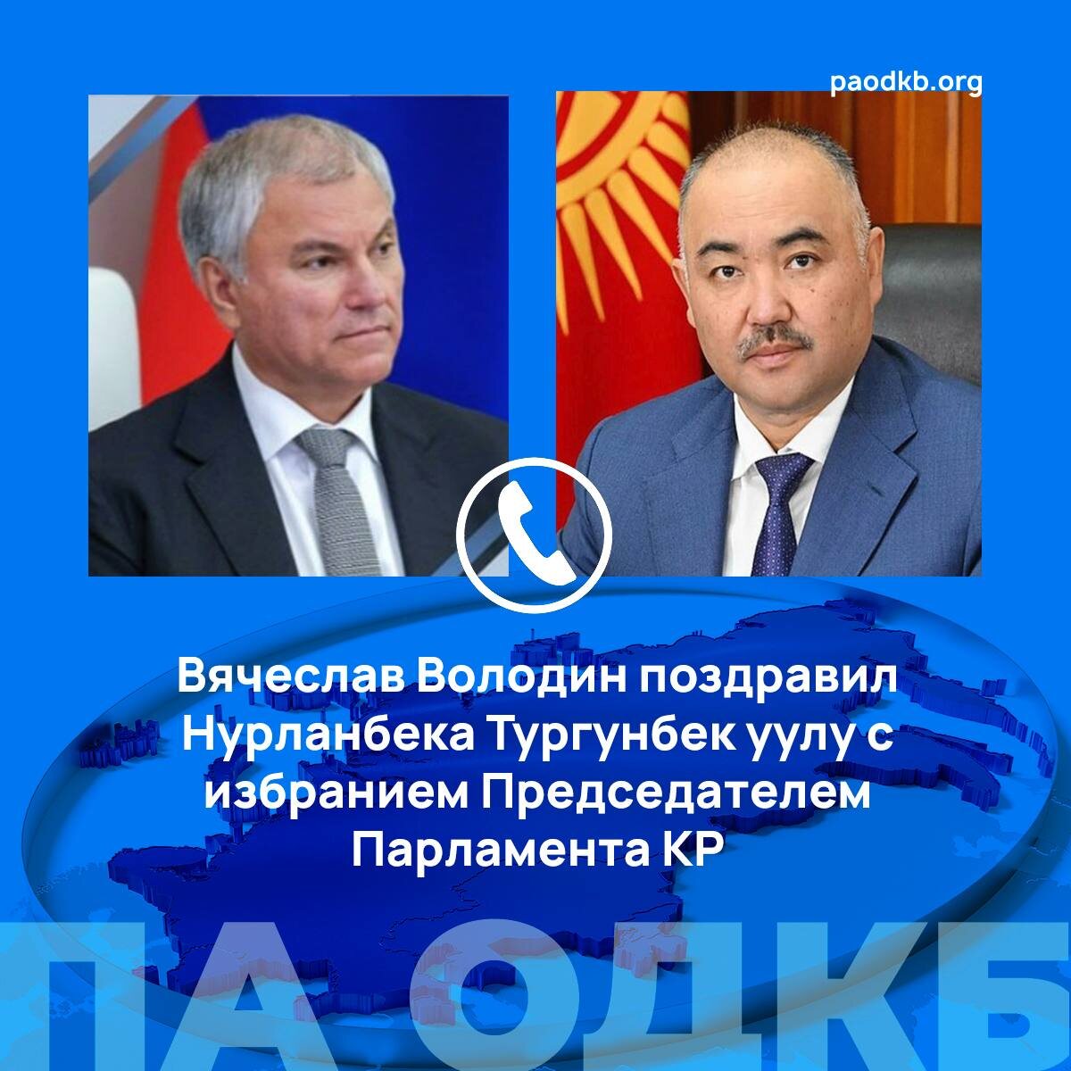 🔴 Председатель Госдумы РФ, Председатель Парламентской Ассамблеи ОДКБ Вячеслав Володин провёл телефонный разговор с Председателем Жогорку