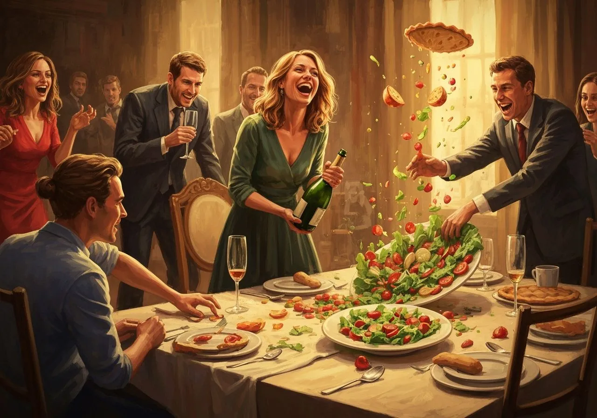 Вот вам вопрос из разряда «правда жизни»: когда вы готовите праздник, вы больше надеетесь, что всё пойдёт по плану, или тайно ждёте маленького чуда, которое этот план смело перечеркнёт? Я однажды так хотела, чтобы стол «ломился от яств», что он… буквально сложился пополам. Да, под тяжестью моих кулинарных амбиций опоры не выдержали. Бутерброды полетели в оливье, селёдка под шубой обняла крабовый, и всё это великолепие медленно поползло на пол. Чудом не разбилось ничего, кроме моих представлений о безупречном приёме. Оформление блюд пострадало безвозвратно. И знаете что? Пришлось на ходу менять всё: и меню (на «спасённое»), и настроение (с паники на смех), и концепцию вечера (тема «роскошного банкета» сменилась на «весёлую катастрофу с шампанским»). Вот и Праздник необыкновенных изменений в последнюю минуту — это не про удачу. Это про наш навык встречать жизнь в том виде, в каком она решает к нам прийти. Не в отглаженном платье, а в фартуке, вытирая пол. Психологически мы все немножко