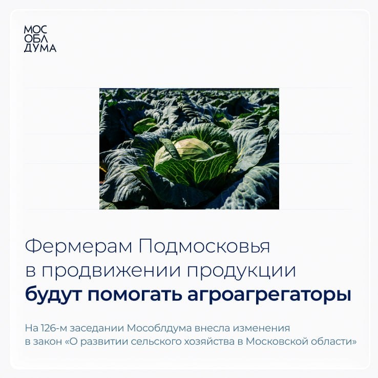Закон принят на заседании Думы 🔹В Подмосковье действует более 800 крестьянских фермерских хозяйств. И главная проблема, с которой они сталкиваются – продажа своей продукции. «Закрепляя понятие агроагрегаторов в законодательстве, мы даём фермерам дополнительную поддержку, поскольку такие организации будут помогать им реализовывать свою продукцию. Агроагрегаторы – это центры реализации фермерской продукции, призванные искать дополнительные механизмы для её сбыта. В то же время, мы предусмотрели меры поддержки и для самих агроагрегаторов. Они смогут претендовать на областную поддержку, в частности, это доступ к кредитам на льготных условиях», – пояснил председатель Комитета Мособлдумы по аграрной политике и потребительскому рынку Сергей Керселян. ❗️Благодаря новому закону, для фермеров появится больше возможностей сбывать свою продукцию через посредников – те самые агроагрегаторы. 💼 | Подписаться | Обсудить 📱Мособлдума в MAX