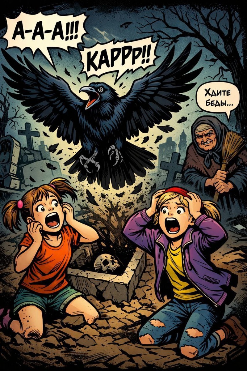Вы смотрите ужастики? Я смотрю. И всегда смотрела. И даже знаю почему. Нет, дело не в том, что мне нравится бояться. Мне нравится — контролировать страх. Это как в детстве: качели повыше, вода поглубже, истории пострашнее. Чем страшнее, тем безопаснее — если можно нажать на паузу. Психологи давно это объяснили: мы смотрим ужастики, чтобы испытать неконтролируемое чувство страха… в контролируемой обстановке. Это симуляция. Аттракцион. Химическая вечеринка в мозге: адреналин, дофамин, кортизол. Вырвались, испугались, выжили. Ура, я снова жива и на диване. Но мы с моей сестрой однажды решили, что ужастиков маловато. И попёрлись на… кладбище. Да-да. Ровно в тот возраст, когда тебе 10 лет, мозг недоразвит, а чувство меры — выключено. Вечер. Старое кладбище. Памятники, как пьяные шахматисты, валяются в траве. Земля в могилах — местами провалилась, как сценарий у дешёвого хоррора. И мы, две юные исследовательницы страха, подошли к одной такой яме. Заглянули. И через секунду: ВЫЛЕТАЕТ ВОР