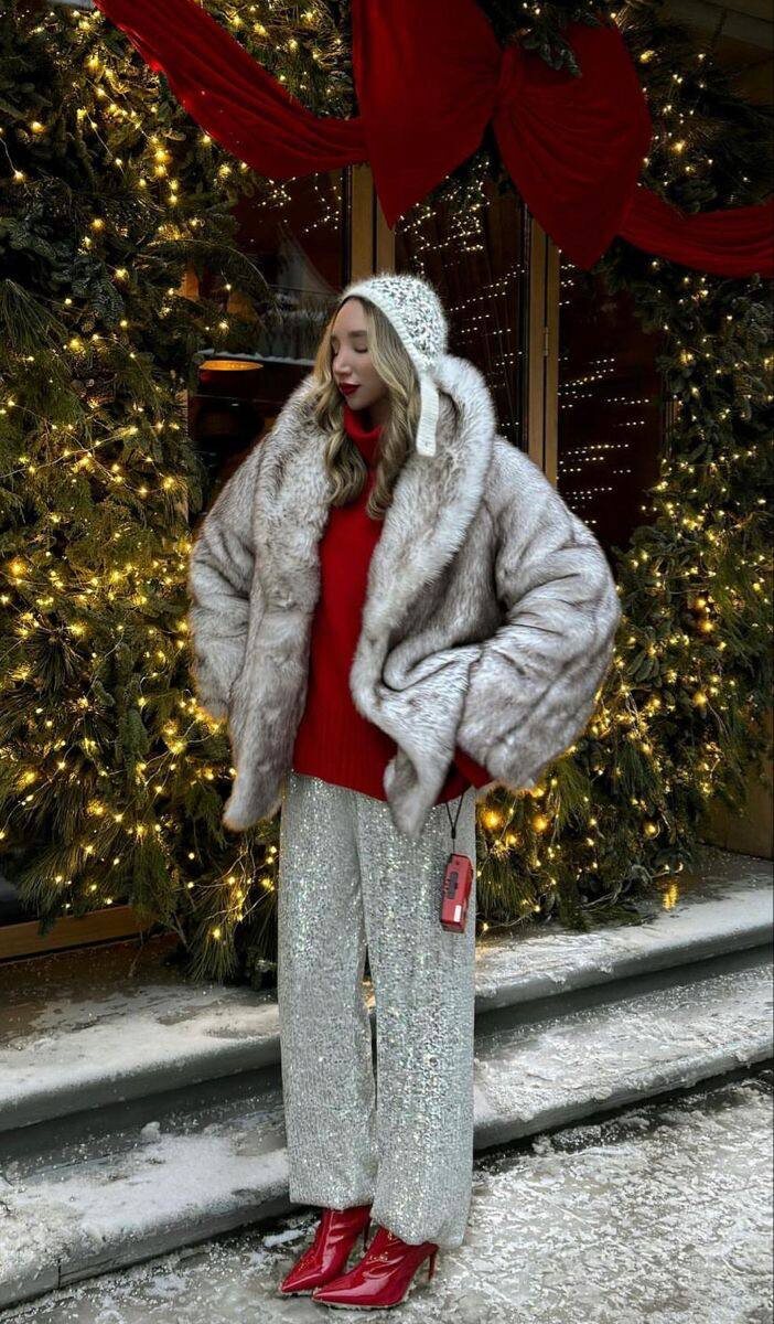 Собрал сочетание для тех, кто хочет выглядеть стильно, смело и актуально — без перегруза и «карнавала». Разбор образа: 🤍Короткая серая шуба-полушубок — база, которая балансирует блеск и цвет. Смотрится дорого, не утяжеляет образ и идеально работает зимой. 🤍Серебристые штаны в пайетках — тот самый новогодний акцент. Максимум праздника без лишних деталей. 🤍Красный свитер — добавляет тепла образу (и в прямом, и в стилистическом смысле), делает комплект живым и не «холодным». 🤍Красные ботильоны — смелая точка, которая связывает образ воедино и вытягивает силуэт. 🤍Трендовая шапочка-чепчик — модный штрих, который сразу выводит образ на уровень street style, а не банального «праздничного». Этот образ — отличный вариант для новогодней вечеринки, похода в ресторан или встречи Нового года в городе. Он про уверенность, характер и ощущение праздника, а не про «как у всех». Если хочется быть заметной, но со вкусом — берите на заметку! Ищите ссылки внизу, сохраняйте и вдохновляйтесь👇 Шуба