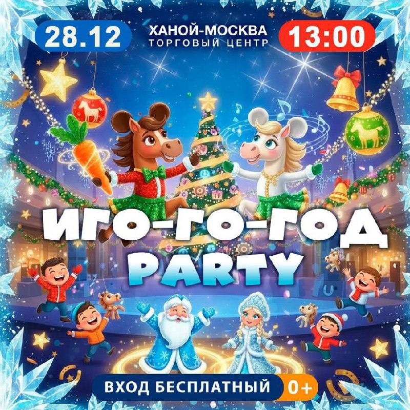 » 📍ТЦ «Ханой-Москва», 2 этаж 🗓️28 декабря в 13:00 На «Иго-го-год party» скакуны Микки и Тики будут развлекать маленьких гостей торгового центра забавной эстафетой, согревающими танцами, большими елочными игрушками и другими увлекательными играми. В конце мероприятия на сцену поднимутся Дед Мороз со Снегурочкой, чтобы поздравить всех с наступающим Новым годом! 🎊 🆓 Бесплатно Подробнее ЗДЕСЬ @Together_with_kids Пост носит информационный характер Поддержать канал голосом ЗДЕСЬ