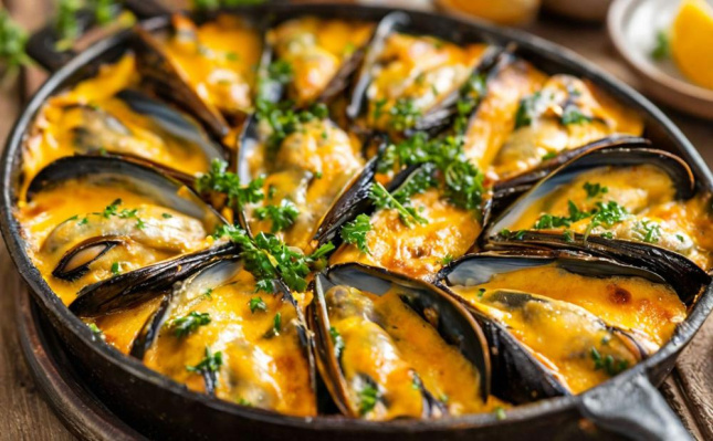 Запечённые мидии под нежным сырно-чесночным соусом — эффектная горячая закуска, которая готовится всего за несколько минут и идеально подходит как для праздничного стола, так и для уютного вечера дома.