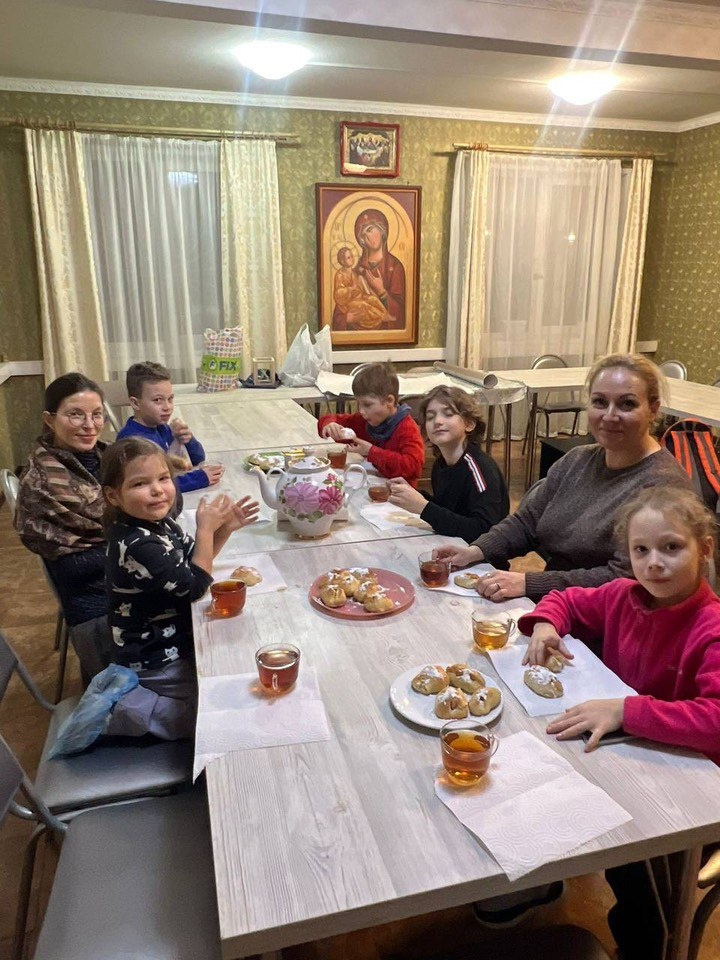 «Человек, который дарит себя людям» 🎀 13 декабря в воскресную школу Патриаршего подворья при храме Сретения Господня в Московском приезжала в гости Нина Васильевна, преподаватель церковно-славянского языка в Патриаршем подворье при храме Архистратига Михаила в Тропареве г. Москвы. Ученикам воскресной школы и их родителям посчастливилось перенять рецепт приготовления журавликов — постных булочек. 🍞 Один из учеников, Артем, помогал месить тесто, лепить журавликов и сдабривать их свежим яблоком. Получилось невероятно вкусно, а главное — быстро и интересно. У Нины Васильевны есть большой опыт и особый метод обучения. Кроме того, она объяснила ценность совместного приготовления еды. По её словам, этот процесс укрепляет семейные узы, улучшает общение, развивает навыки: моторику, креативность, ответственность, самостоятельность и создает традиции, принося удовольствие всем. Это совместное занятие позволяет лучше узнать друг друга и помогает детям почувствовать причастность к общему делу.