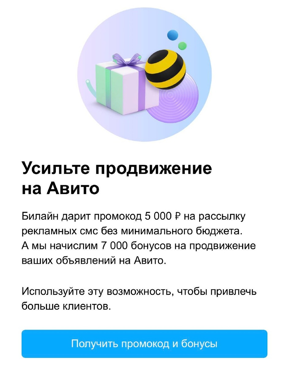 Привет, коллеги. Делюсь с вами информацией о том, как получить 7000 бонусов от Авито, если вы новый клиент площадки. Авито запустил акцию совместно с Билайн. Подробности по ссылке. Акция актуальна для продавцов Товаров❗️ А исполнителям Услуг лучше получить 20000 бонусов или x2 бюджета через нас. Подробности в этом посте. Ставьте🔥, если было полезно. 😎Горбачёв | Подписаться