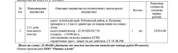 № 22:39:020102:736, площадь 110500 кв.м., адрес: Алтайский край, Рубцовский район, п. Пушкино, примерно в 1,5 км от ориентира по направлению на северо-запад. Начальная цена 19 255,90 руб. (Загурский В.А. (долевая собственность), арест, запрещения регистрации, ст. 56 ЗК РФ) (1627) (повторные) Канал: Госземля Алтайский край Область: край Алтайский Алтайский край Район: Рубцовский район Населенный пункт: п. Пушкино, примерно в 1, 5 км от ориентира по направлению на северо-запад Локация: Смотреть на карте ВРИ: Сельскохозяйственное использование Кадастровый номер: 22:39:020102:736 Кадастровая стоимость: - Вид сделки: Продажа Площадь: 110500 м² Начальная цена: 19255.00 руб. Дата завершения: 14.01.2026 Подробнее: ГИС ТОРГИ #госземля #земляотгосударства #земля #земельныйучасток #земельныеторги #торги #аукцион #продажаземли #продажа #алтайскийкрай
