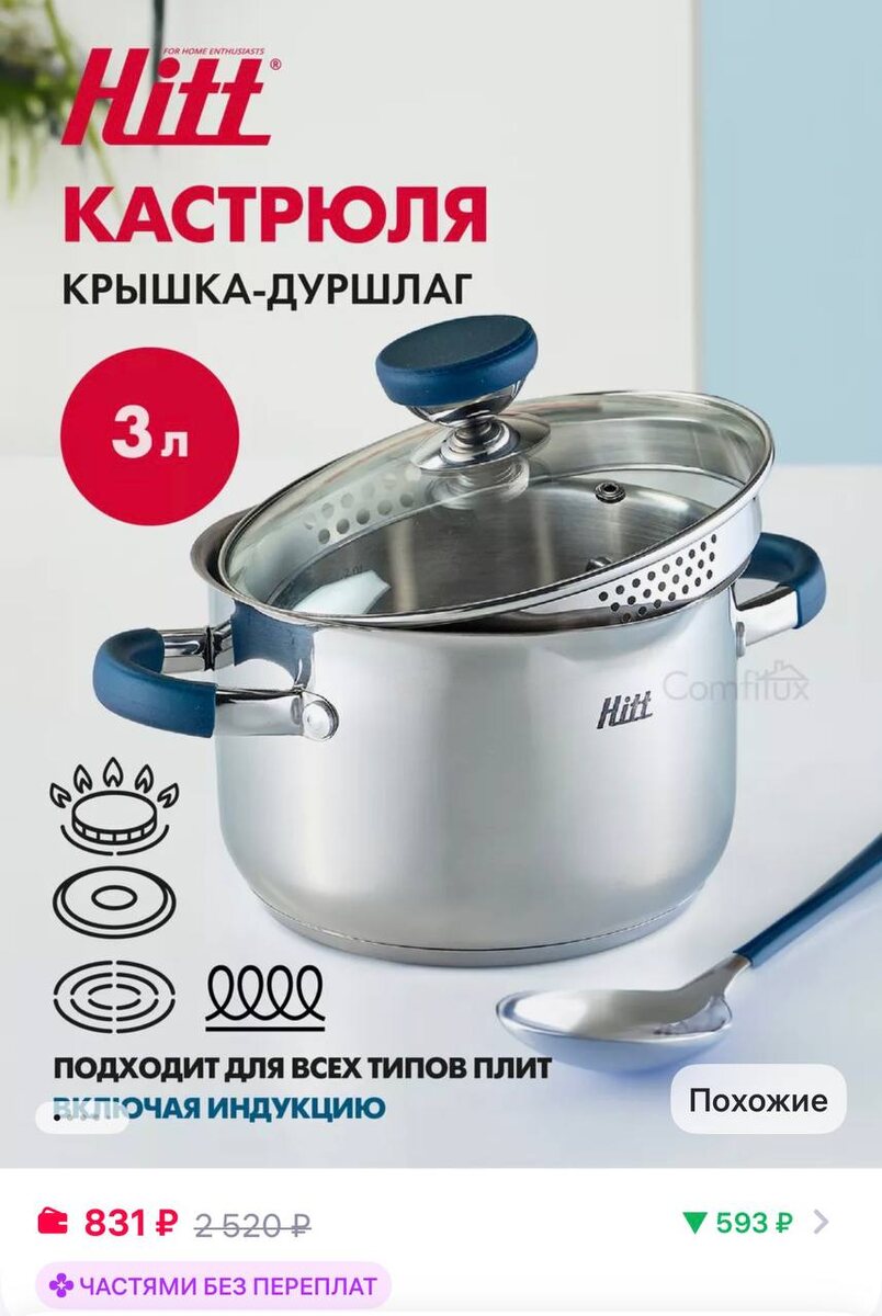 HITT Кастрюля, для индукционной плиты с крышкой, 3 литра