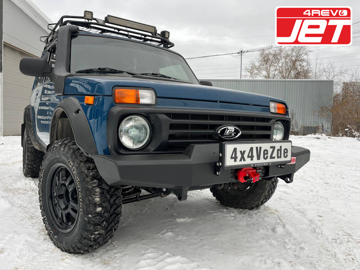 Сегодня на повестке дня 4REVO JET 12000S, которую наш дилер Тюнинг центр 4х4VeZde установил на Ниву. Лебедка установлена в силовой бампер. Тяговое усилие лебедки выбрано с запасом для этого автомобиля. В чем плюсы и минусы такого решения? С одной стороны, лебедка, установленная с запасом, не только кратно перекрывает потребности владельца автомобиля, но и позволяет вытягивать автомобили большего веса, такие как УАЗ, Паджеро и тд. С другой стороны, более мощные лебедки проигрывают в скорости: А скорость - ключевое преимущество JET.