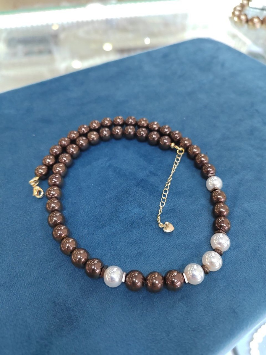 Добрый день, 🎉 предлагаю вашему вниманию бусы из гематита шоколадного цвета с вставками из замечательной сверкающей Майорки