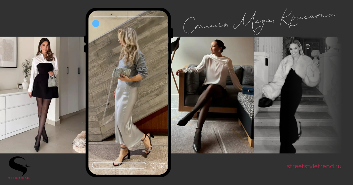 Я просто в восторге от этого элегантного новогоднего образа! Она демонстрирует гладкий черный укороченный топ с перекрученными деталями и длинную юбку-макси из атласа цвета слоновой кости с высокой талией, которая струится как во сне — непринужденно, стильно и невероятно празднично.