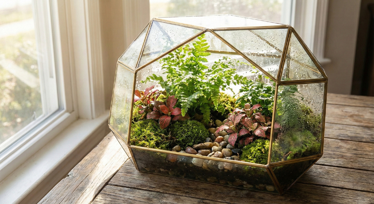 Создание флорариума — это не просто посадка растений в банку, а проектирование полноценной живой экосистемы. Стеклянный бокс позволяет создать отдельный микроклимат, который идеально подходит для самых капризных тропических видов, страдающих от сухого воздуха в квартирах. В этой статье мы разберем, как правильно обустроить флорариум после того, как у вас появился стеклянный сосуд, и что нужно поместить внутрь, чтобы система работала! Чтобы флорариум не превратился в «кладбище растений» через месяц, слои внутри должны располагаться в строгом порядке. Это база, которая отвечает за здоровье корней. • Дренаж (нижний слой). Стеклянный бокс не имеет отверстий для слива воды. Керамзит или мелкая галька на дне — обязательное условие. Они собирают излишки влаги, не давая корням гнить. • Слой угля. Древесный или активированный уголь предотвращает появление плесени и неприятных запахов, работая как антисептик. • Субстрат. Используйте легкий, рыхлый грунт. Для закрытых систем лучше всего подходи