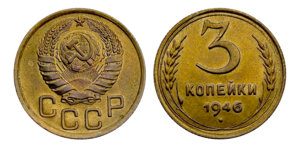 3 копейки 1946 года чеканились сразу после войны, в период активного восстановления монетного производства.