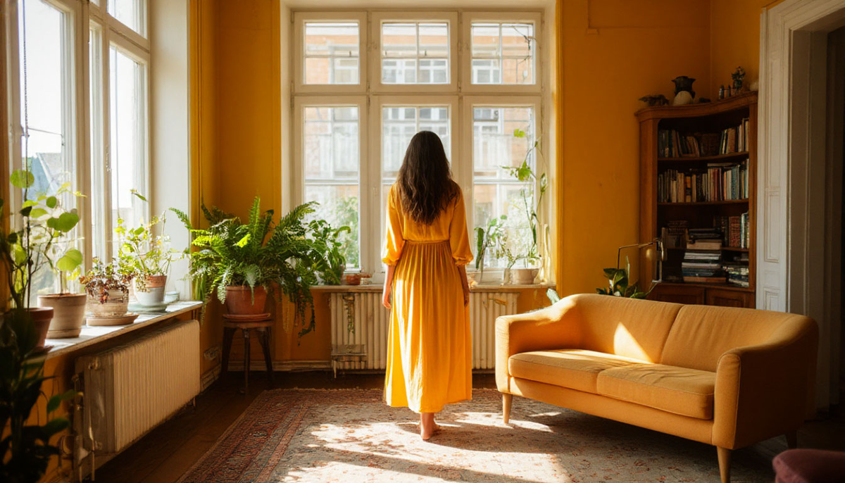 Домой Марина вернулась поздно: мансарда, которая когда‑то казалась временным убежищем, за год превратилась в настоящий дом. Она научилась извлекать красоту из ограниченного пространства: большие окна наполняли комнату светом, многоуровневые полки вмещали книги и чертежи, а на стенах висели эскизы и фотографии реализованных и будущих проектов.