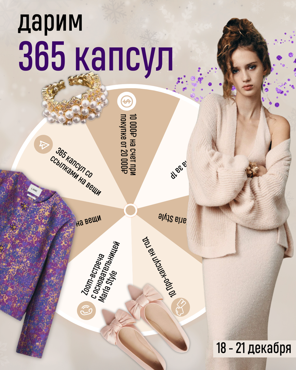Хотите встретиться с той, кто основала Marla.Style и 🖋пишет наши тексты (и этот тоже)? Или годовую подписку на закрытый канал в Telegram с 💊капсулами? ⠀ А, возможно, ваша капсула обойдется вам на 25% дешевле💸Или вообще половина вернется на счет в виде бонусных баллов💎 ⠀ 👉🏻Заполните анкету на подбор и крутите барабан🌀 ⠀ Примерку можно назначить до 📆31 января 2026! А подарок мы подарим сразу! ⠀ 🔗Ссылка на своем месте ⠀ И пусть год будет таким же приятным🫶🏻 ⠀ #марла_инфо