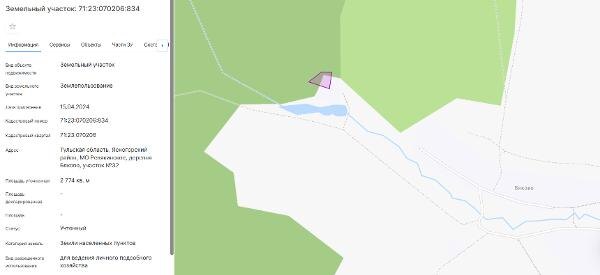 Название: продажа земельного участка из земель населенных пунктов с кадастровым номером 71:23:070206:834, площадь 2774 кв