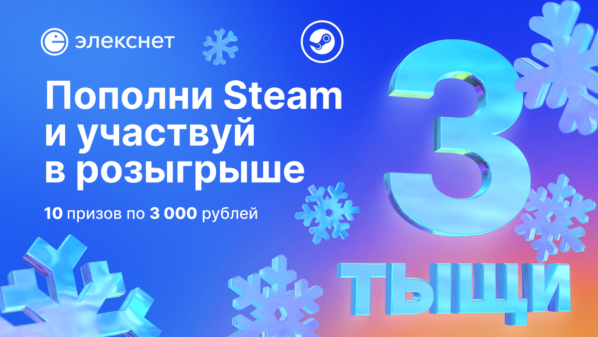 Розыгрыш к зимней распродаже STEAM «Пополни баланс STEAM через ЭЛЕКСНЕТ и участвуй в розыгрыше»