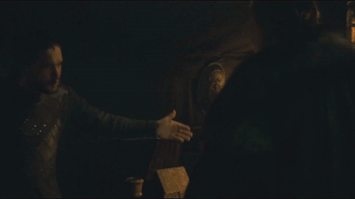 Эта сцена необычайно трогательна, как это часто бывает в сценах с Джоном и Сансой. Она почти не нужна для сюжета. Это последнее, что мы видим от Джона перед тем, как выясняется, что он сын Рейгара Таргариена и Лианны Старк, что делает это явно не похожее на братско-сестринское взаимодействие с Сансой немного менее подозрительным, за исключением случаев повторного просмотра. (Кстати, представьте, если бы эта сцена произошла после того, как мы узнали, что Р+Л=Дж...)