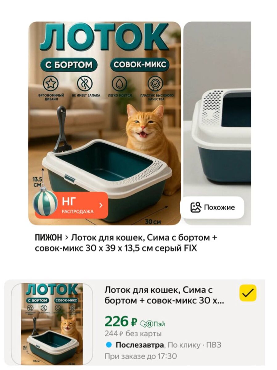 Лоток для кошек, Сима с бортом + совок-микс 30 х 39 х 13,5 см серый FIX https://market.yandex.ru/cc/8HTnve 🛍DEC122-AF — скидка 100 ₽ на один любой заказ от 5000 ₽ ✅ Канал по скидкам 🔣 Бот с промокодами