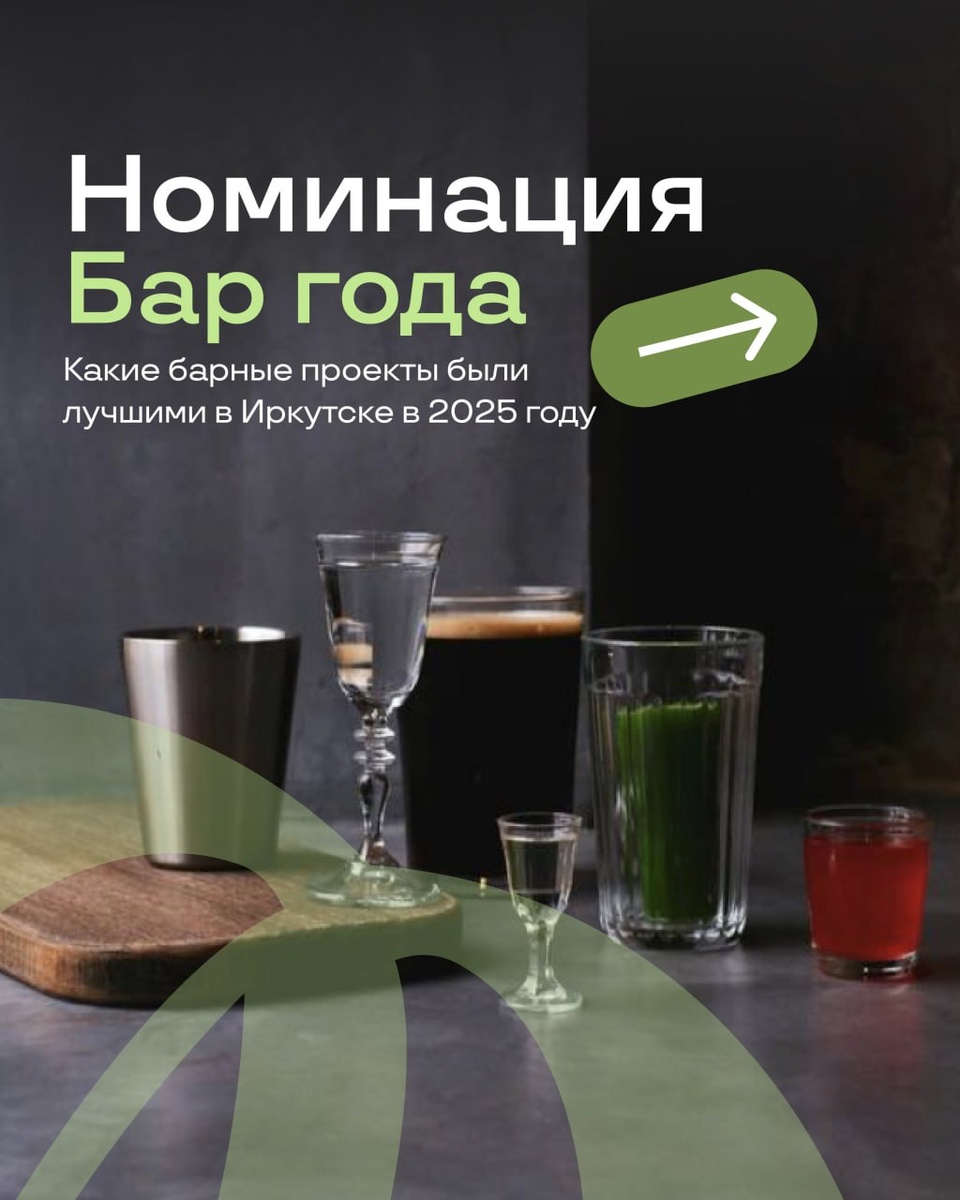 » Седьмая часть номинантов ежегодной премии «Итоги года» от Иркэдишен ⭐️ В этом году у нас появились новые номинации. Мы решили еще больше поддержать гастросферу Иркутска и отметить яркие проекты среди четырех категорий: кофейни, бары, кондитерские и рестораны. Среди проектов мы отметили любимые питейные заведения иркутян: рюмочные с авторскими настойками, спикизи и секретные бары и мастодонтов гостевых смен 🥃 🔗 Отдать свой голос можно здесь 🔗 #премия2025