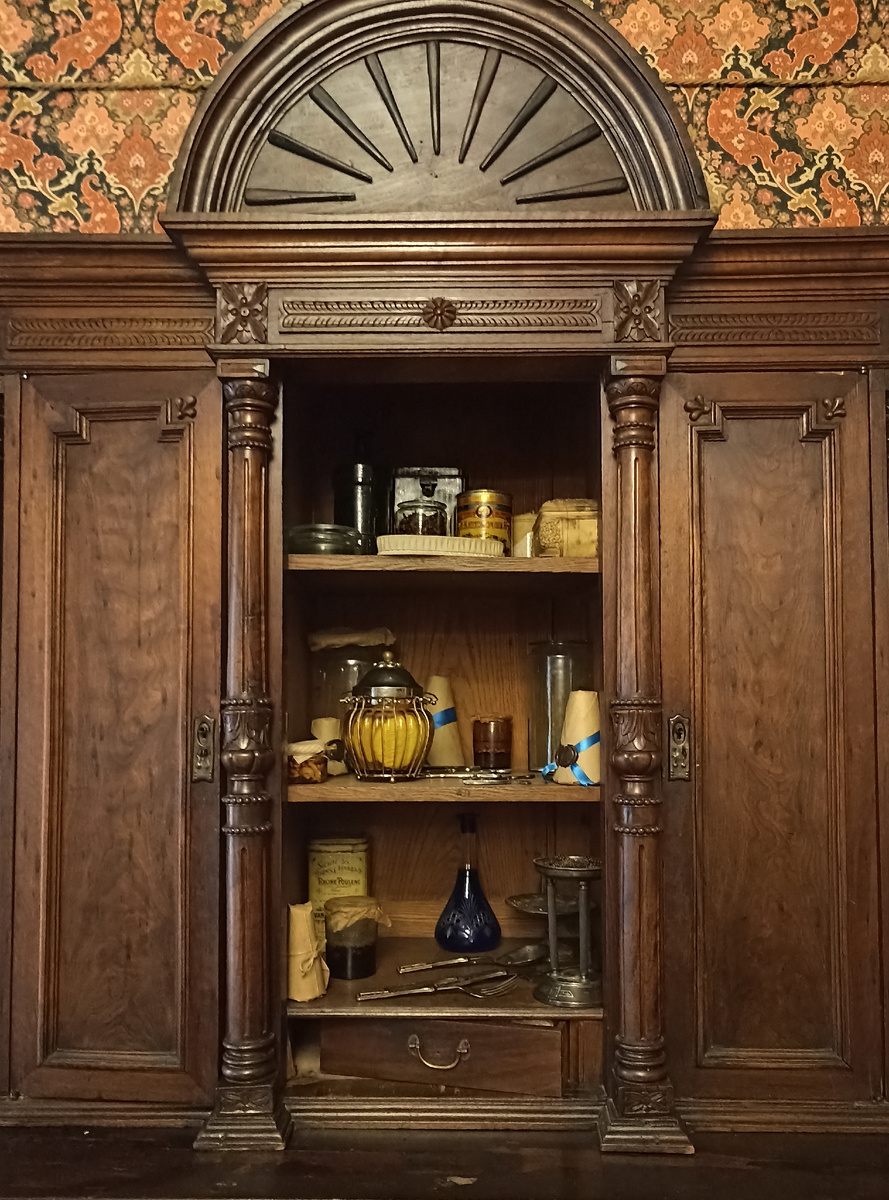 Чайку испили (как говорила моя бабушка), идем в комнату, которую хозяйка заведения сдавала швее-модистке, жительнице Сергиева Подсада начала XX века. Ну, здесь все понятно - платья, шляпки, шпильки, заколки и другие дамские штучки...