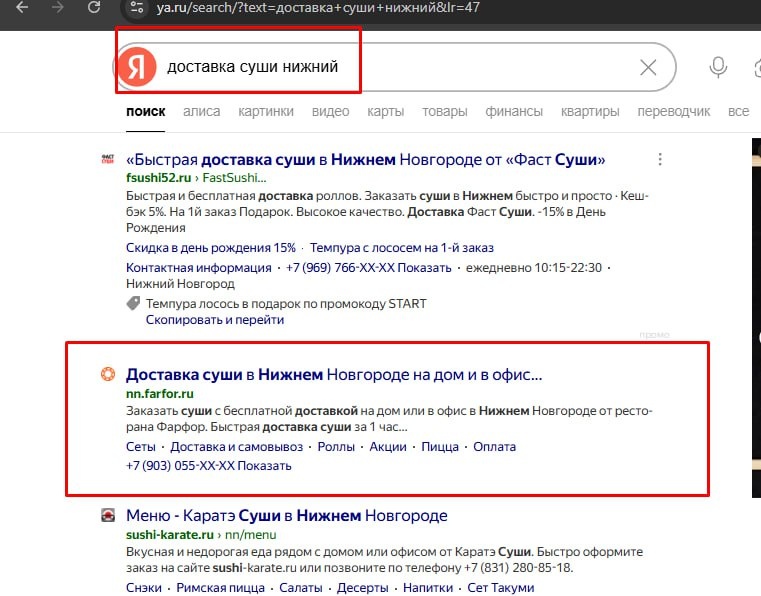 ТОП 1 по Яндексу в нише доставки суши и роллов за 3 дня