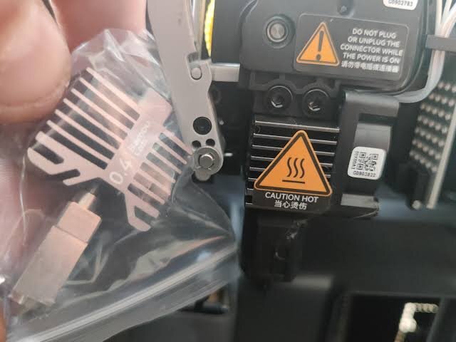 Замена стандартного сопла на сопло из закалённой стали на Bambu Lab P1S:
