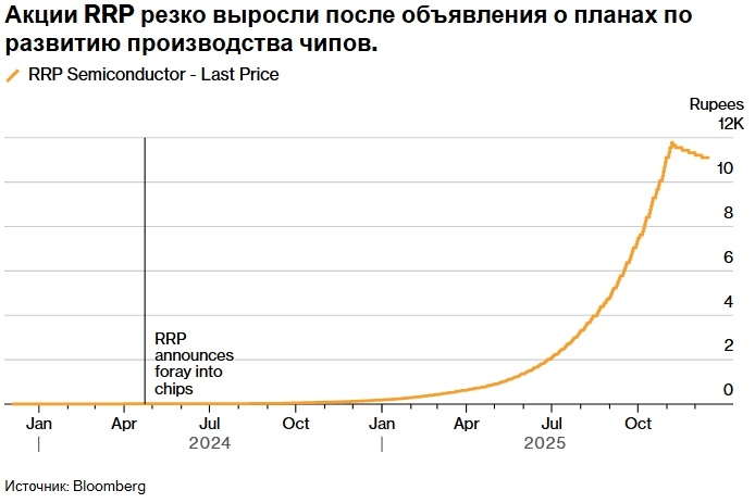 Акции RRP Semiconductor Ltd. выросли более чем на 55 000% за 20 месяцев, несмотря на отрицательную выручку. Индийская комиссия по ценным бумагам начала проверку на возможные нарушения, и после пика 7 ноября акции упали на 6%. Этот случай подчеркивает сложность защиты розничных инвесторов от спекуляций, особенно в Индии. Акции компании, продемонстрировавшей впечатляющие результаты, стали примером для инвесторов, нацеленных на сверхприбыль от искусственного интеллекта. RRP Semiconductor Ltd., ранее малоизвестная даже на внутреннем рынке Индии, привлекла внимание после роста акций более чем на 55 000% за 20 месяцев, завершившихся 17 декабря. Это рекордный показатель среди компаний с капитализацией более миллиарда долларов. Рост произошел несмотря на отрицательную выручку, двух сотрудников и слабую связь с полупроводниковым бумом после отказа от инвестиций в недвижимость в 2024 году. Онлайн-ажиотаж, небольшой объем акций и растущая база розничных инвесторов привели к 149 сессиям повышения