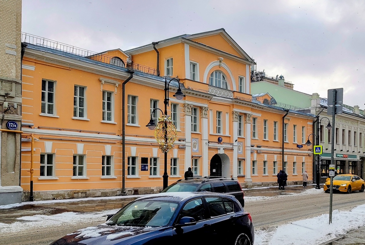 На Пятницкой улице (дом 19)- старинная усадьба. Почти дворец. Некоторые считают здания просто великолепным. Может и преувеличение. Но усадьбу почти так и называют. Усадьба Великолеповых. Долгое время эти купцы владельцами были. После того, как после войны 1812 года ее Фекла Михайловна Великолепова купила. Сама усадьба гораздо старше. Как пишут, в 1782 году главный дом был перестроен и представлял из себя «каменный корпус с подъездом на погребах». Поэтому на табличке указывают. Мол, XYIII век. После пожара 1812 года от «каменного корпуса с подъездом на погребах» одни стены остались. Вот это пепелище и купила по дешевке Великолепова. Откуда такая фамилия звучная? Из крепостных. А крепостные, когда вольную получали, каких толь фамилий не приобретали. Некие досужие источники утверждают. Мол, красоты была Фекла необыкновенной. За то и вольную получила. Вряд ли. Во- первых, вольную еще ее родители получили. Так что эта легенда к кому и относилась, так это к ее маме. Во- вторых, фамилию все-