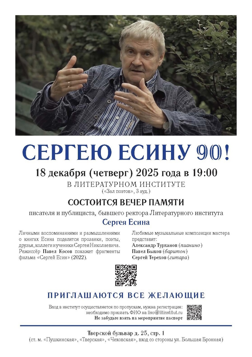 Тут такое дело. Сегодня моему мастеру Сергею Николаичу Есину исполнилось бы 90 лет. Логично предположить, что высшее учебное заведение, которому он отдал 30+ лет своей жизни, педагогической деятельности и административного ресурса (а ректорствовал он ~ 15 лет), могло бы что-нибудь да соорудить к этому дню. Всё-таки институция эта памятливая, своих старается чтить. (На каком из трёх последних слов следует проставить саркастическое ударение, я так и не решил). Но тут ведь как.