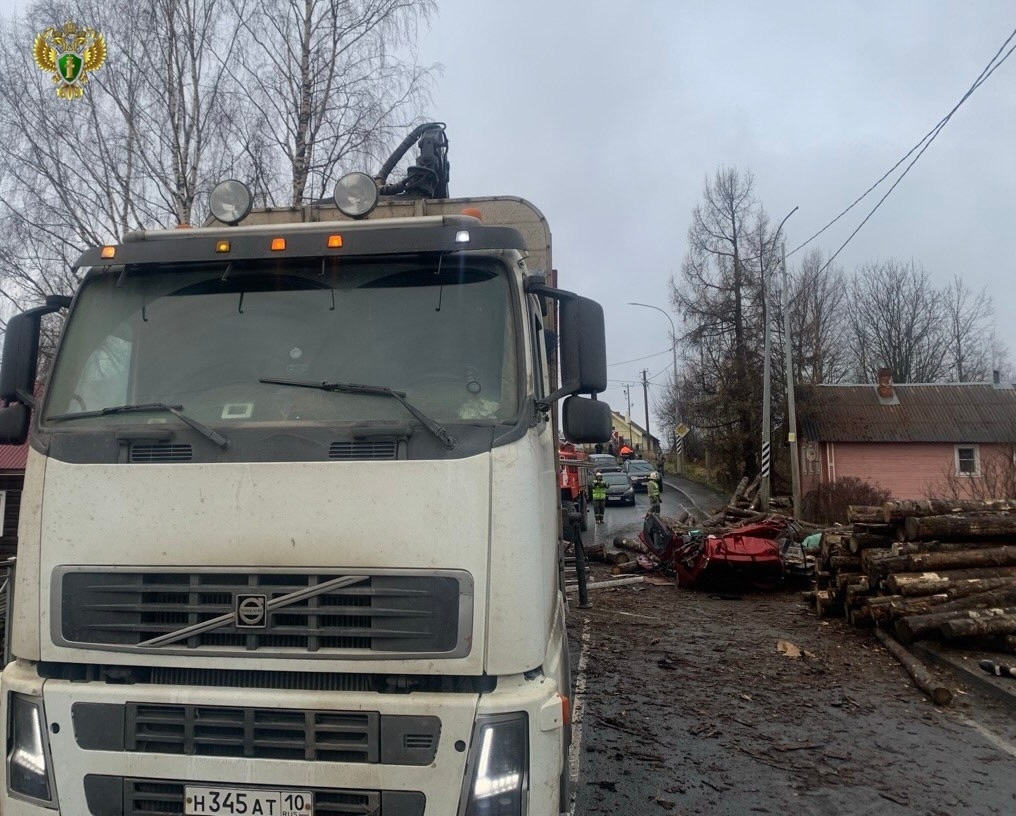 Прокуратура работает на месте смертельной аварии в Прионежье, где лесовоз раздавил легковушку