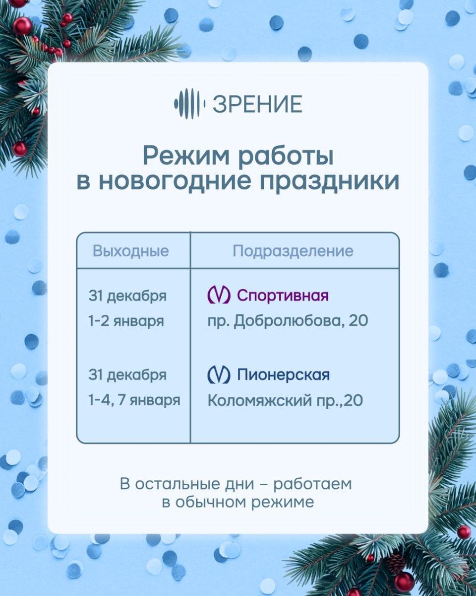 🌲? Делимся режимом работы наших подразделений, чтобы вы легко могли выбрать удобный день для визита. ✨ Записаться на прием можно ⭐️через кнопку «записаться» ⭐️на сайте ⭐️по телефону +7 (812) 603 86 05