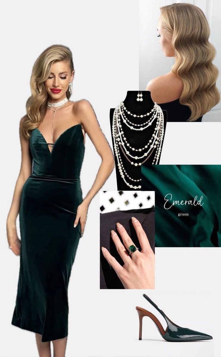 💚 Один из сложнейших цветов — зеленый, мы оставили напоследок, чтобы дать пару советов для создания гармоничных образов: 1️⃣Зеленое платье требует подбора аксессуаров по принципу "60-30-10": 60% зеленого (платье), 30% нейтрального (обувь, сумка), 10% акцентного. 🔟Для торжественных мероприятий к зеленому платью можно выбрать золотые или бронзовые туфли — они придают образу праздничность и роскошь. Демонстрируем более элегантные сочетания в духе классики, которые всегда выглядят выигрышно: обувь в тон платья (изумрудные туфли к изумрудному платью), но на 1-2 тона темнее для создания монохромной гармонии, а также классика — черные лодочки на шпильке. 3️⃣Металл украшений подбирается по температуре зеленого: теплые оттенки (оливковый, хаки, желто-зеленый) гармонируют с желтым золотом, бронзой, медью; холодные тона (изумрудный, нефритовый, виридан) сочетаются с белым золотом, серебром, платиной. Камни: изумруды усиливают роскошь зеленого образа, жемчуг добавляет элегантности. 🖤Неско