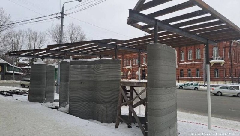Основные работы по возведению первого в России 3D-печатного павильона почти завершены, хотя благоустройство решили отложить на следующий год, пока не спадут холода. Томский государственный архитектурно-строительный университет (ТГАСУ) планирует завершить основные работы по монтажу напечатанного на 3D-принтере остановочного павильона в текущем году, а открытие запланировано на январь, сообщила изданию «РИА Томск» соруководительница сети живых лабораторий Томска «Студгородок» Ника Седикова. Проект реализуется совместно с московской строительной компанией Smart Build Service, филиалом ставропольской компании-разработчика и производителя строительных 3D-принтеров Smart Build. Павильон на Соляной площади станет первой в России остановкой, изготовленной при помощи технологий 3D-печати бетонными смесями. В основе конструкции изогнутая стена, с одной стороны которой будут располагаться четырнадцать мест для отдыха пассажиров, а с другой — цветник. Приблизительная стоимость пилотного проекта