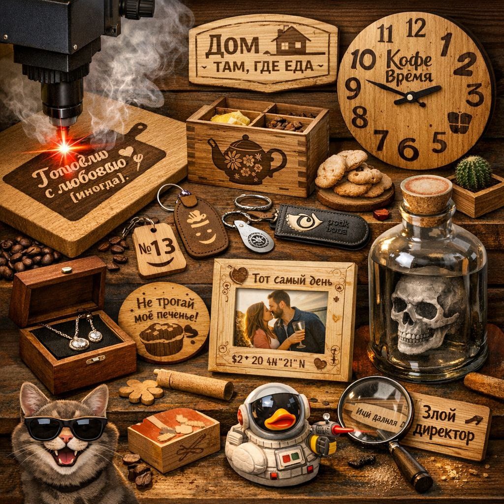 Бывает такое состояние: Фантазия есть, руки чешутся, лазер готов, а в голове — пусто, как на табличке «Не курить». Хорошая новость: Лазерная гравировка — это не только скучные таблички, номерки и «ООО Ромашка, вход с другой стороны». Ва групп официально заявляет: Мы жгли, жжём и будем жечь — красиво 🔥 И вот что можно сделать лазером, даже если идеи спрятались под стол. 🔥 Когда лазер — художник, а не просто инструмент Лазер умеет больше, чем кажется. Он не просто «выжигает текст», он: добавляет характер, делает обычные вещи «вау», превращает простой предмет в подарок, арт или мем. Главное — перестать думать шаблонами. 😎 Что можно гравировать, кроме табличек (и не стыдно показать людям) ☕ Кухня, где начинается креатив: Деревянные доски с надписями вроде «Готовлю с любовью (иногда)» Подставки под кружки с шутками, цитатами или семейными мемами Коробки для чая, кофе, сладостей — сразу +100 к уюту 🪵 Домашний декор с характером: Деревянные панно с фразами «Дом там, где еда» Часы с нестан
