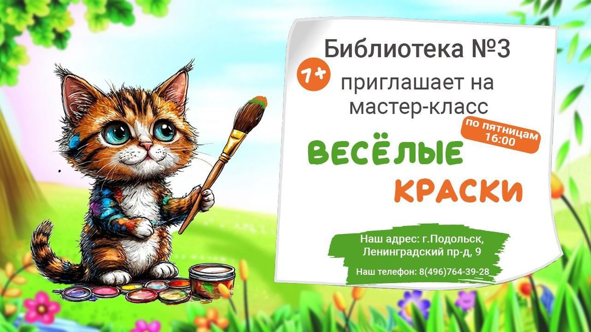 ✨ Веселые краски в библиотеке 🎨 По пятницам рисуем красками 💥 Присоединяйтесь 🚫 Возраст: 3+ 🏢 Библиотека № 3 📍 г. Подольск, Ленинградский проезд, д.9 (офис 1) 💰 Вход свободный❗️ ⭐Поддержать канал голосом 🍰Где поесть в Подольске ✅ Мероприятия Подольск https://dzen.ru/id/66ed500f7b5671493eca3fd6 http://vk.com/podolsk_events http://dzen.ru/podolsk_events