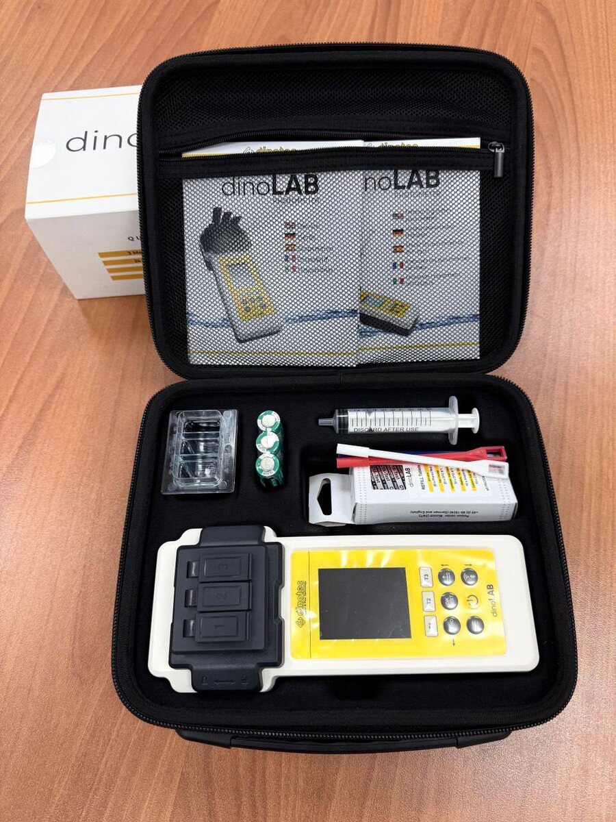 - профессиональный анализ воды, доступный каждому Особенности: • Быстро измеряет до 24 ключевых параметров воды в бассейне и спа. • Максимальное удобство: просто погрузите водонепроницаемый прибор (IP67) в воду благодаря уникальным 3-м кюветам. • Умное управление: синхронизация по Bluetooth® и WiFi с БЕСПЛАТНЫМ приложением LabCOM®. Ваши данные всегда под рукой! • Больше никаких догадок: получайте рекомендации по дозировке средств для ухода и рассчитывайте LSI-индекс прямо в приложении. • Всегда в курсе: автоматическая синхронизация данных с облаком LabCOM®. В базовый набор уже входит всё необходимое для старта: сам прибор, кюветы, реактивы для основных тестов и удобная сумка для хранения. Узнайте больше о dinoLAB и сделайте свой бассейн идеально чистым и безопасным @allpools. 👈 📦