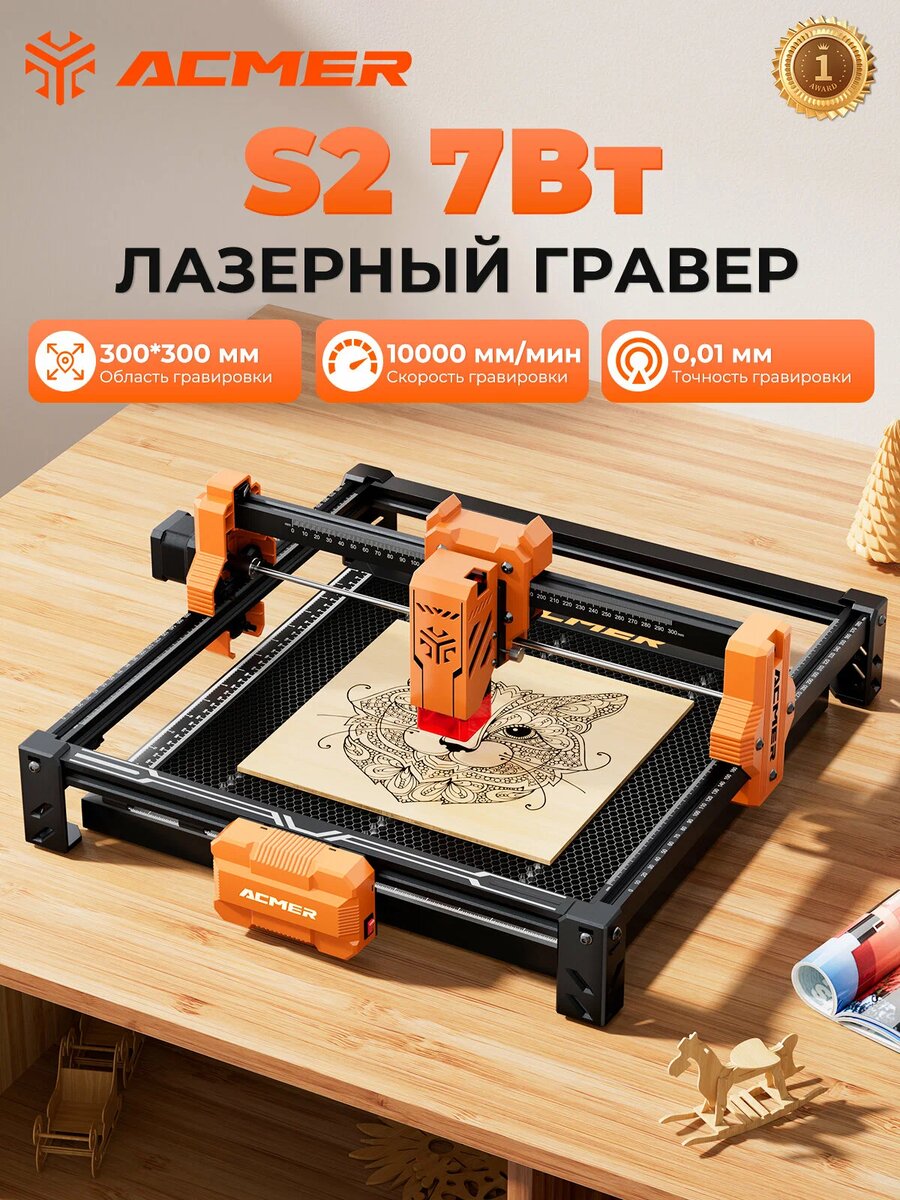 ACMER S2 — это компактный настольный лазерный гравер, предназначенный для работы с различными материалами, такими как дерево, пластик, кожа и акрил. Модель отличается доступной ценой и возможностью самостоятельной сборки, что делает её идеальной для начинающих мастеров и энтузиастов DIY-проектов.Особенности